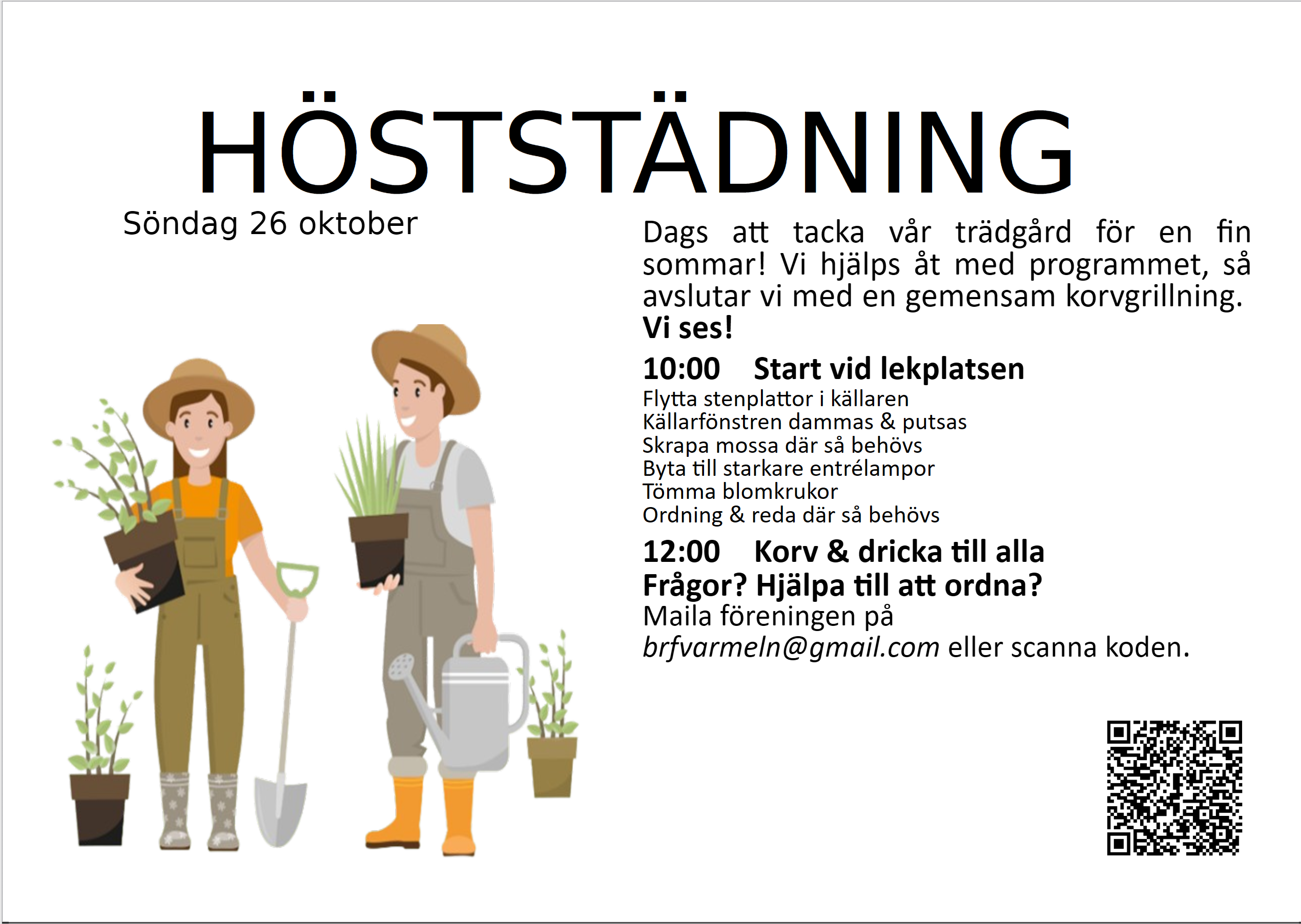 Träffa grannarna! Snygga till våra gemensamma utrymmen! Slit ut din rygg i förtid!
